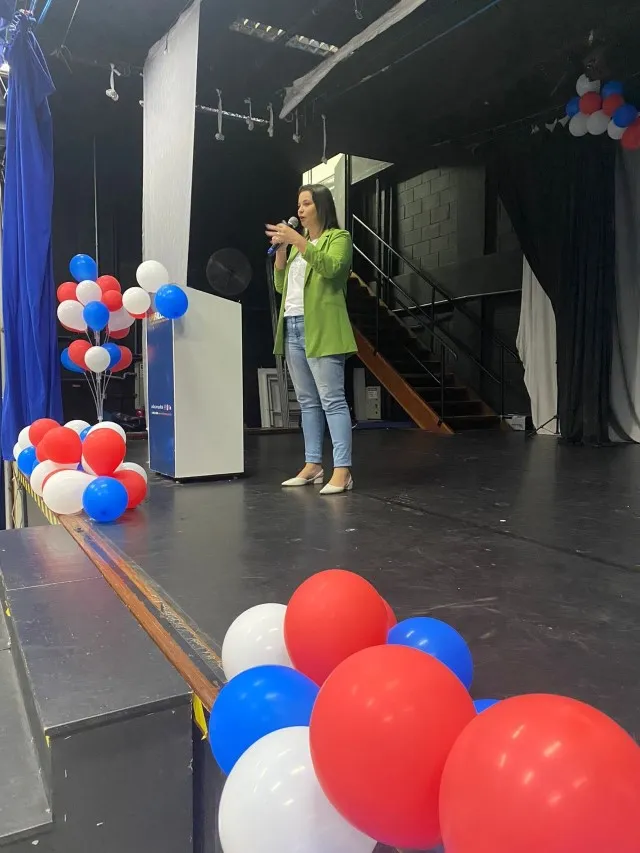 A primeira palestrante foi a Diretora escolar e Especialista em inclusão, Karen Merlim, que durante sua fala expôs sua realidade sendo mãe de uma criança autista e também recém diagnosticada como tal. A convidada apontou as dificuldades de uma pessoa autista na escola, a dificuldade de se conseguir um diagnóstico e a luta para autenticar direitos simples oferecidos para pessoas com autismo, sendo responsável por uma unidade escolar ela também pontuou como a educação infantil é importante para o desenvolvimento e inclusão de crianças com espectro autista.