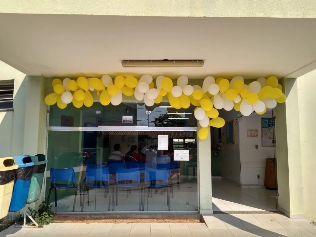Os alunos, acompanhados do professor José Paulo Muniz, preparam a UBS para este mês. “Colocamos cartazes, arcos e bexigas amarelas e brancas incentivando a conscientização”, comenta o professor Jose Paulo.