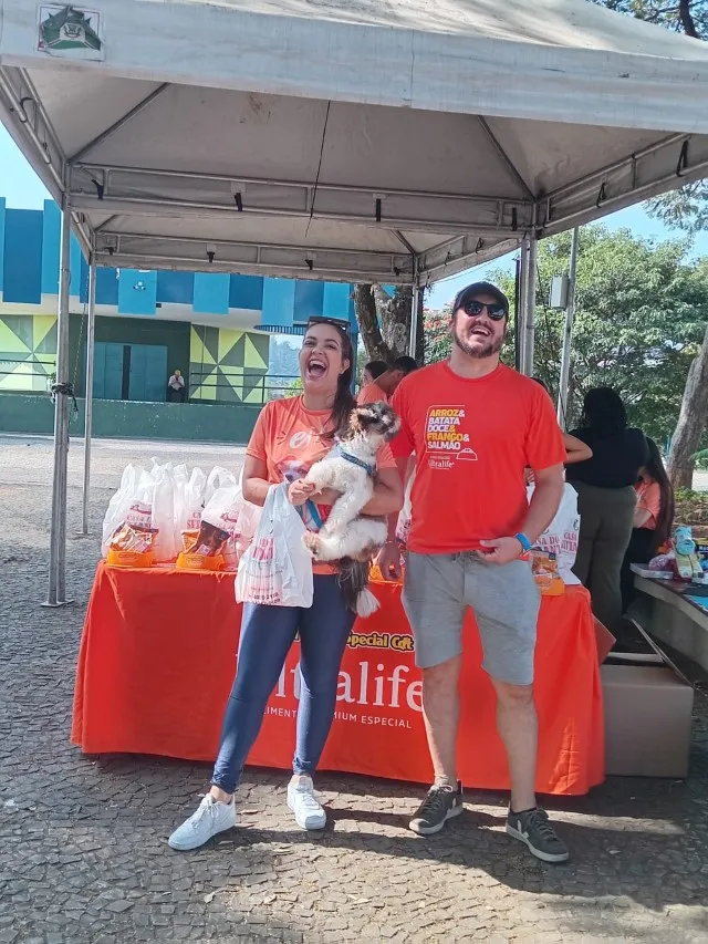 Em média 19 cães estavam disponíveis para adoção, eles não estavam presentes, mas fotos e QR Codes foram distribuídos para que assim os interessados pudessem conhecer não só o cãozinho mas também todo o abrigo.