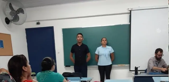 Os alunos tiveram que elaborar uma aula, com tema de domínio, em duplas, para apresentarem. Os assuntos foram os mais diversos, como o escolhido por Juliana Valério de Souza e Erickson Caique Nonato, que falaram a respeito da Sepse, e outros grupos abordaram a hemodiálise, triagem em pronto socorro, vacinação e dor torácica.