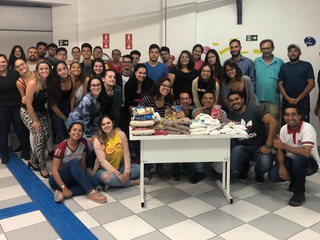 Estudantes veteranos e calouros juntos em prol da arrecadação de alimentos que atendeu a Cidade Vicentina, de Jundiaí