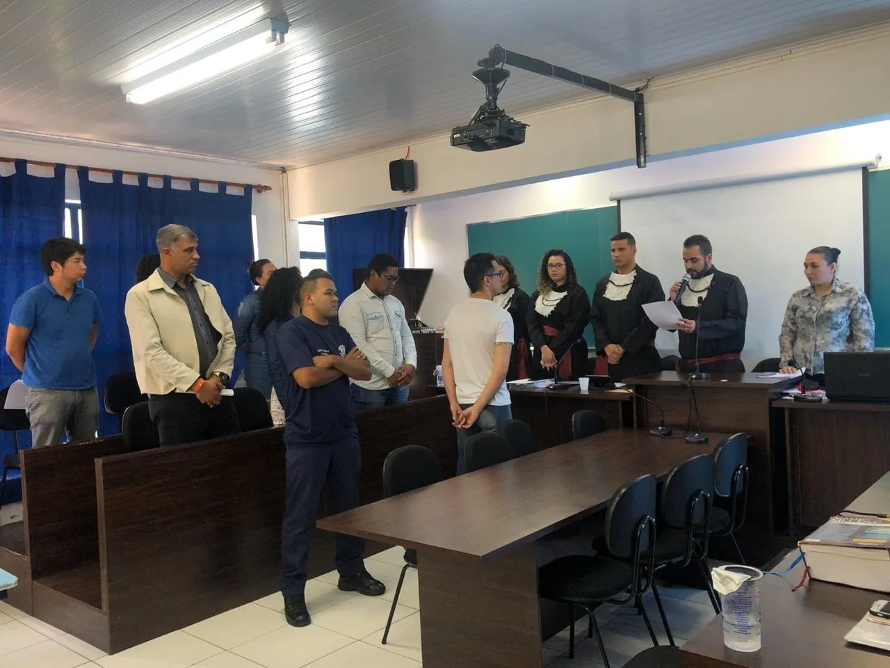 Além de saber de fato a lei e como ela funciona, é de extrema importância que os discentes de Direito saibam se portar em audiências e júris. Sendo assim, professores e o coordenador Mauro Cabral organizaram atividades práticas nos dias 18 e 25 de novembro, no período noturno, e no dia 3 de dezembro, na parte da manhã.