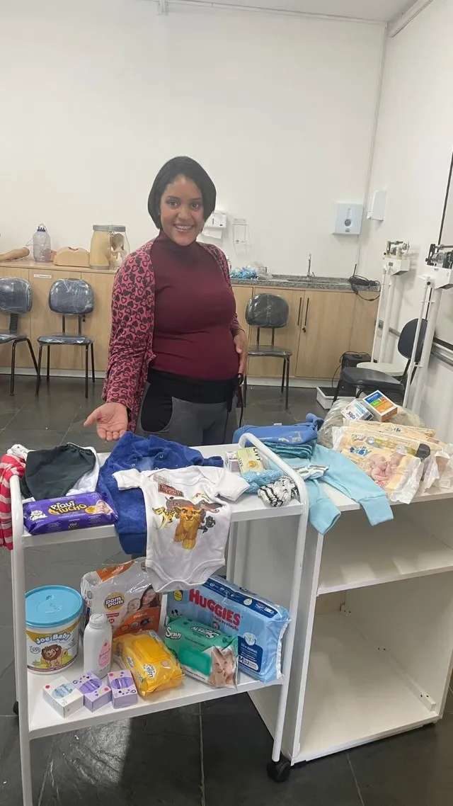 Com a participação voluntária da gestante Gabriela Marcelino Leal, que espera seu terceiro filho, os alunos fizeram o acolhimento, análise da caderneta de gestante, anamnese, avaliação da situação nutricional (com cálculo de índice de massa corpórea), avaliação da situação vacinal, verificação de pressão arterial e acompanharam o exame obstétrico (Manobra de Leopold, verificação de altura uterina e ausculta de batimentos cardíacos fetais).