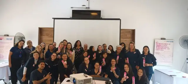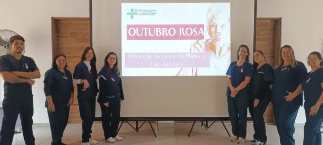 No dia 4 de outubro, os alunos do oitavo semestre do curso de Enfermagem da UNIFACCAMP realizaram uma ação em comemoração ao Outubro Rosa no Clube Jundiaiense. Acompanhados da professora Carolina Aires de Sousa e da professora Adriana Suigh, 14 alunos se dedicaram a promover a conscientização sobre a prevenção do câncer de mama e colo do útero.