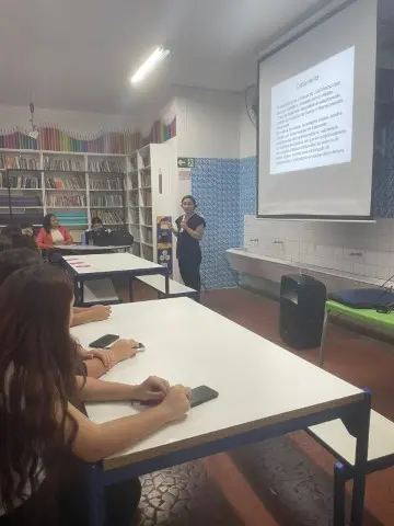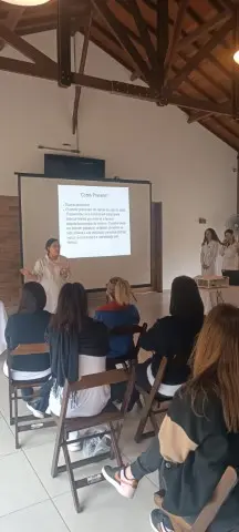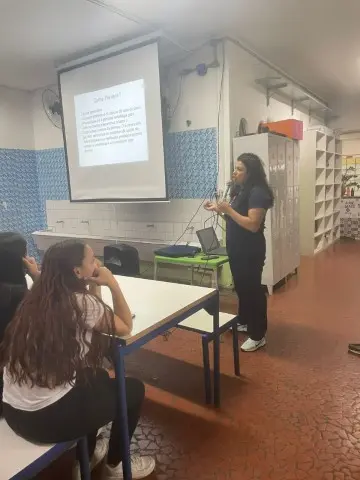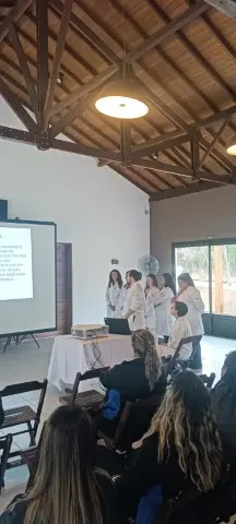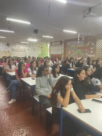 Dando continuidade às atividades do Outubro Rosa, no dia 21 de outubro, os alunos realizaram uma palestra para as alunas da Escola Estadual Getúlio Nogueira Sá, localizada no bairro do Caxambu, em Jundiaí. Durante a palestra, abordaram temas relacionados à prevenção do câncer e ao autocuidado, fortalecendo a educação em saúde entre as jovens.