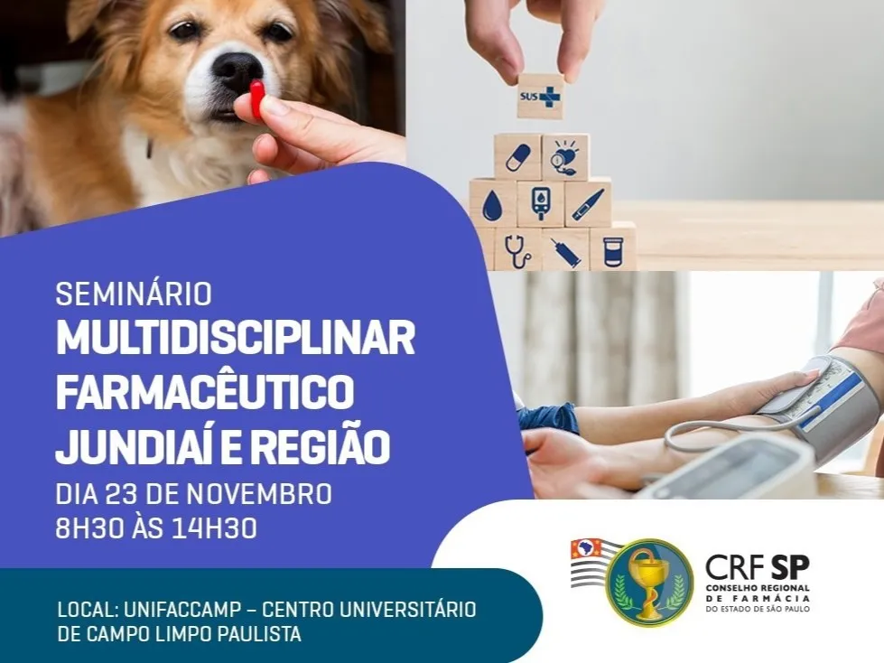 Com o objetivo de apresentar mini-palestras, o Conselho Regional de Farmácia do Estado de São Paulo (CRF-SP) vai promover o I Seminário Multidisciplinar – Áreas de Atuação do Farmacêutico, no sábado, dia 23 de novembro, das 8h30 às 14h30, na Unifaccamp, prédio 7 – sala 12.