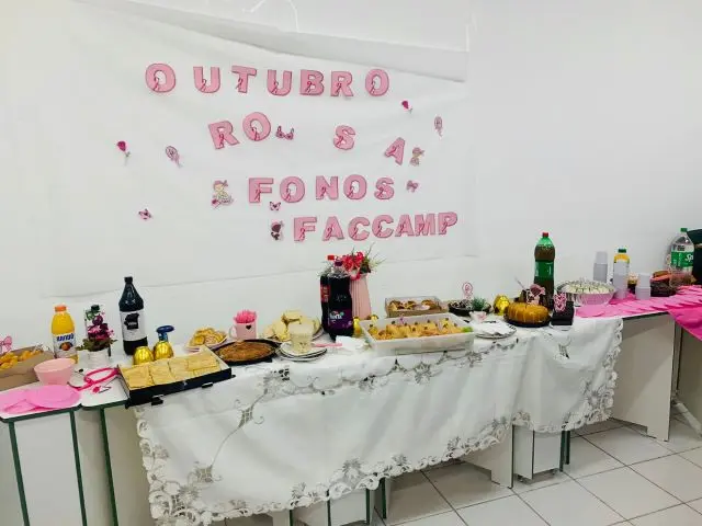Em conscientização ao mês do outubro rosa, o curso de fonoaudiologia da área da saúde do Centro Universitário de Campo Limpo Paulista (Unifaccamp), realizou em 31 de outubro um coffee-break com suas alunas do 6º semestre, que compõe a maioria do curso.