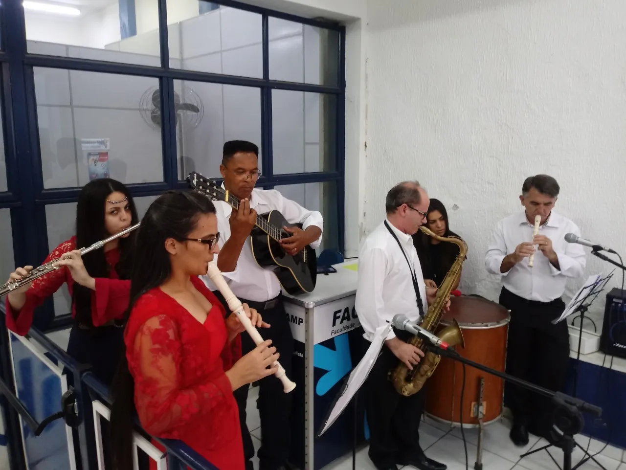 Os alunos do Curso de Licenciatura em Música, coordenados pelo prof. Adriano Vieira, fizeram intervenções artísticas na entrada dos prédios do Centro Universitário Campo Limpo Paulista, no dia 29 de novembro.