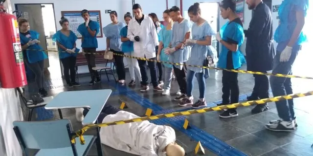 Uma cena de Química Forense também foi montada, e os visitantes foram ensinados a como identificar a causa de algumas mortes a partir de substâncias químicas.