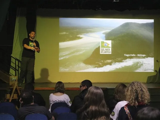 Para comemorar o Dia Internacional do Meio Ambiente, o curso de Gestão Ambiental organizou um evento no Anfiteatro do Centro Universitário, com palestras do Biólogo Tiago Félix da Silva, da Ong Sos Mata Atlântica, e da advogada Daniela, que falou sobre resíduos sólidos, na noite de sexta-feira, 7 de junho.