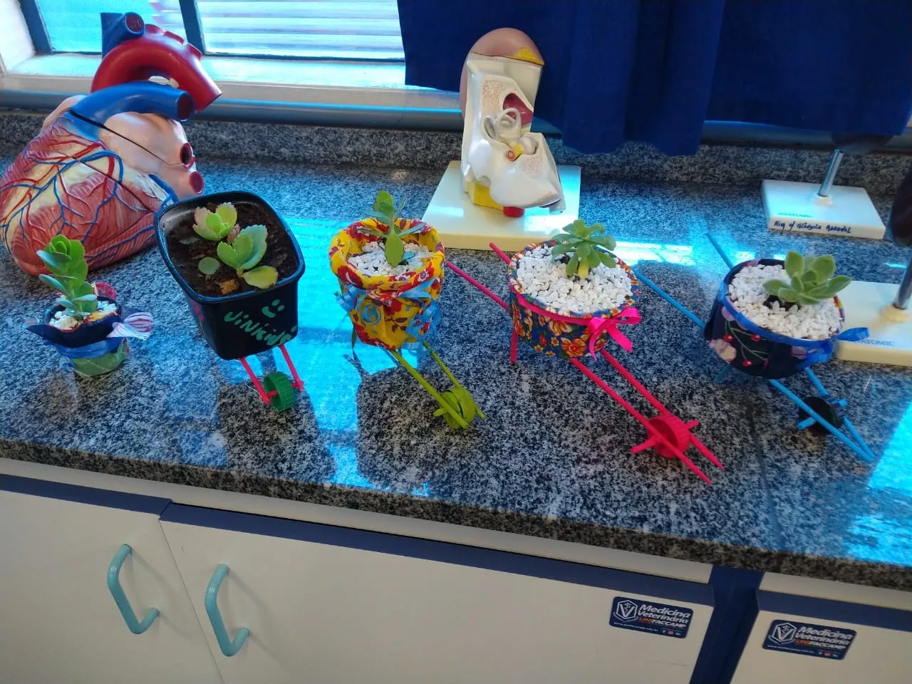 As atividades manuseadas por meio do solo e artesanato permitem o controle do estresse, e promovem a expressão de sentimentos e personalidade por meio da criatividade. O pequeno evento ocorreu no laboratório de Anatomia do Centro Universitário, com a quantidade máxima de 10 funcionários por horário.