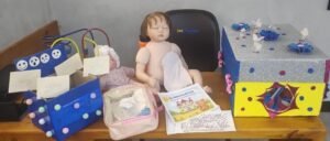 Entre as criações apresentadas pelos alunos estão um livro para colorir, uma caixa de emoções, protótipos de bonecos para simulação de procedimentos como punção venosa, colostomia e curativos, além de propostas para desenhoterapia. Essas ferramentas foram pensadas para abordar diferentes aspectos do universo infantil no contexto hospitalar.