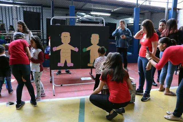 Os estudantes de Educação Física e Pedagogia fizeram diversas atividades educacionais na quadra do colégio Cosmos. Os futuros pedagogos criaram diversos jogos infantis educacionais estimulando o conhecimento e os sentidos. Já os alunos do curso de Educação Física apresentaram aulas de dança e alongamento, atraindo os visitantes.