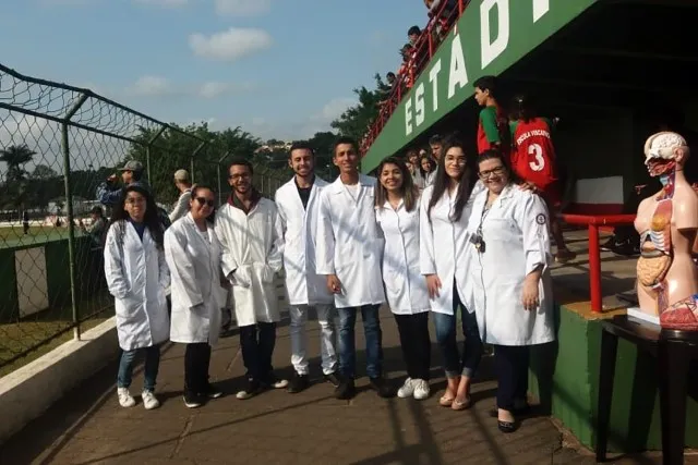 A Liga Acadêmica Multidisciplinar em Saúde, dos alunos da Unifaccamp, fez algumas atividades sobre atendimento em caso de parada cardiorrespiratória e situação de engasgo durante os Jogos Escolares, para mostrar aos alunos de todas as escolas como proceder em casos assim.