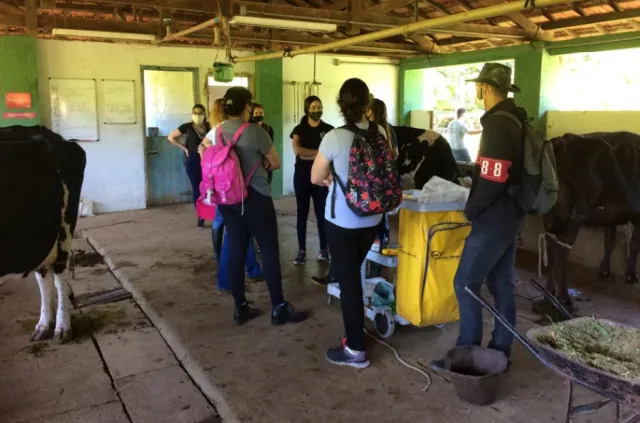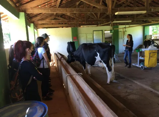 Na Etec Best, onde é oferecido o curso de Técnico em Agropecuária e possui uma grande área com diversos animais, os alunos visitaram o setor de Bovinocultura, que foi demonstrado o processo de ordenha (balde ao pé), armazenamento e análises do leite, parâmetros físicos de bovinos e o manejo dos mesmos.