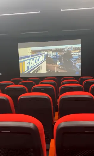 O novo Auditório da Unifaccamp possui uma tela de 160 polegadas, que será utilizada também como uma sala de transmissão ao vivo para os estudantes. Com esse equipamento, toda a turma conseguirá aproveitar as experiências de ações externas ou em laboratórios da faculdade.