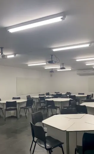 Salas de aulas mais amplas, possuem novas cadeiras e lousa digital, trazendo mais conforto e aprendizado aos estudantes. Outra novidade são as Salas em Grupo, que contam com mesas modulares.