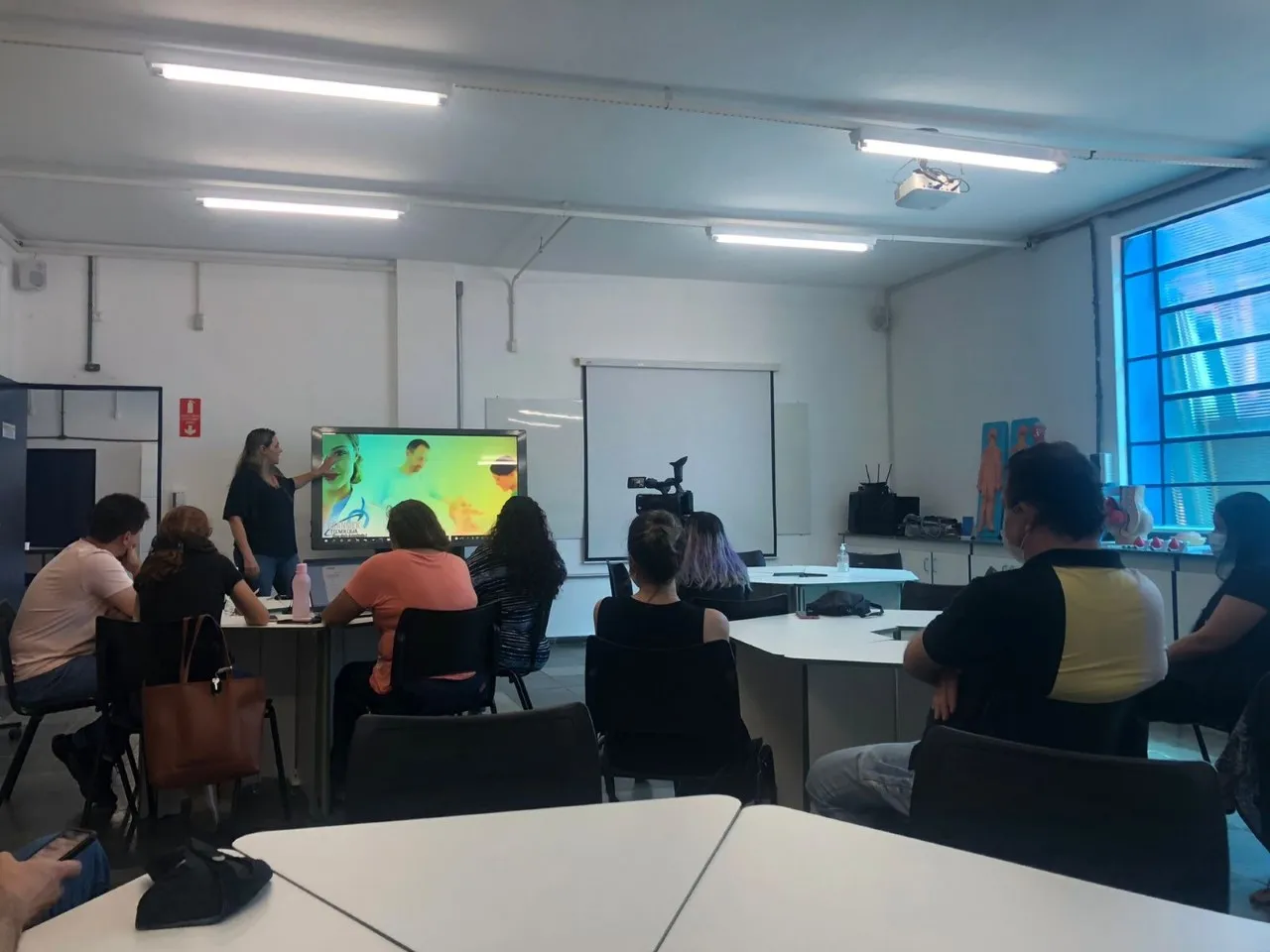 Professores e técnicos dos cursos de Saúde da Unifaccamp participaram no sábado (6) do treinamento de capacitação sobre o funcionamento e utilização da mesa digital. O treinamento foi feito pela empresa Csanmek Tecnologia, com a professora Celimara.