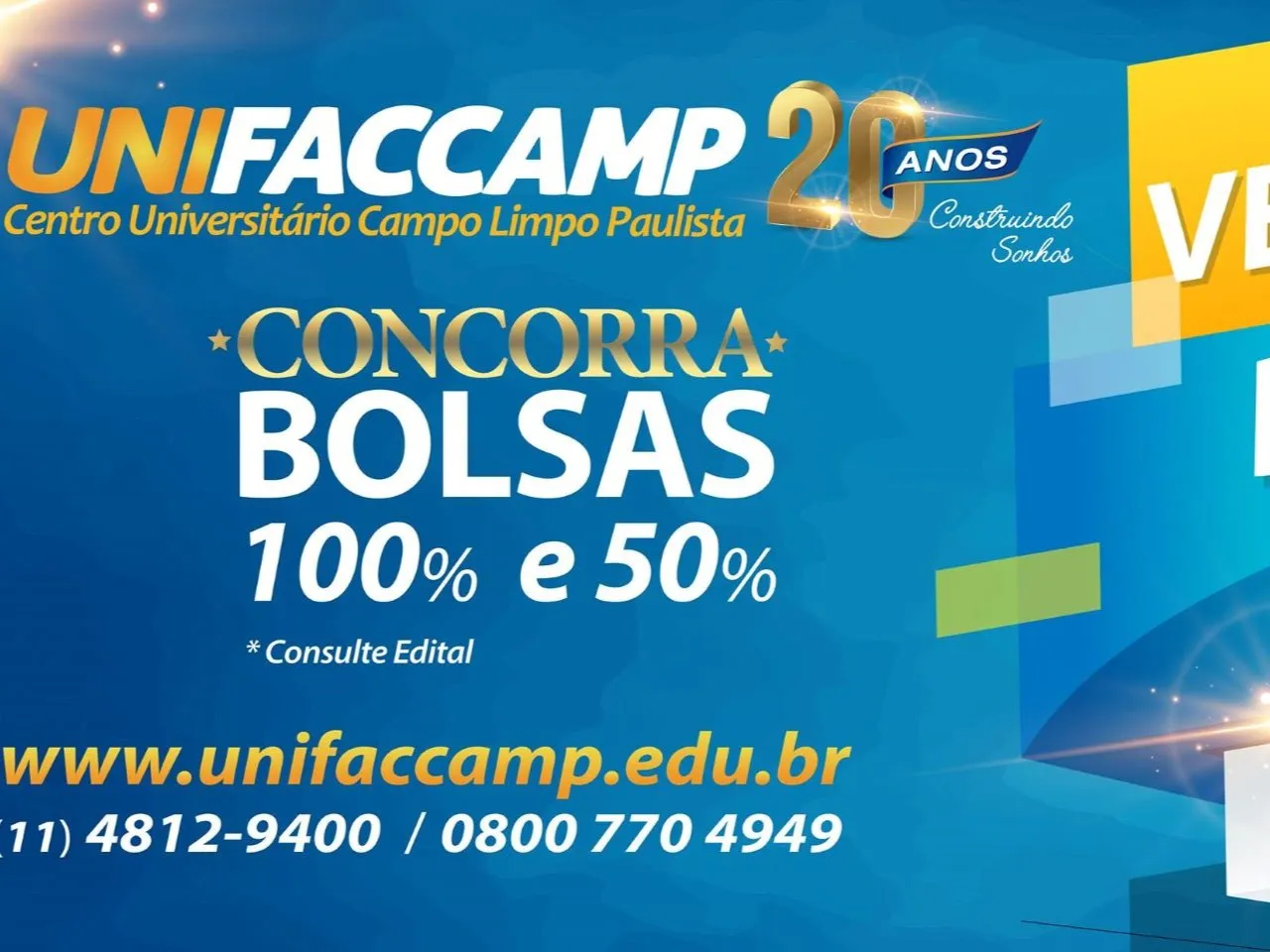 Desde sábado (22 de dezembro) as provas dos vestibulares da Unifaccamp estão sendo realizadas todos os sábados, das 9 às 15 horas, e ainda existe a opção das provas marcadas …