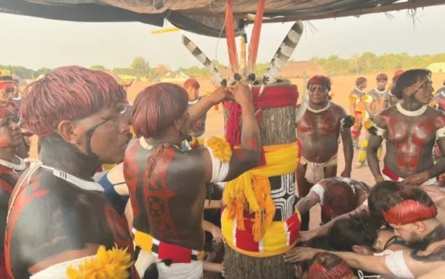 Indígenas durante a preparação da Cerimônia do Kuarup