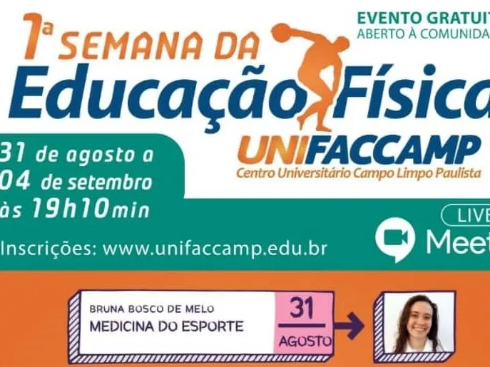 De forma on-line, a 1° semana de Educação Física da Unifaccamp foi um sucesso, com cinco dias de muito conhecimento e aprendizado, reunindo grandes profissionais que conversaram com os participantes pelo Google Meet. Com a facilidade de assistirem à palestra em casa, a comunidade marcou presença nas lives. Foram mais de 1000 participações de 31 de agosto a 4 de setembro.